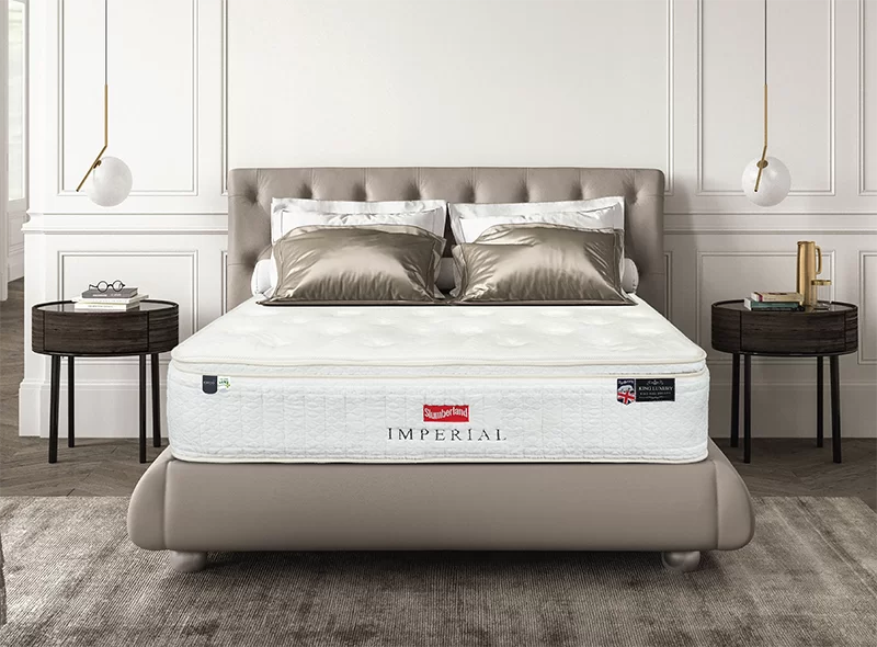Imperial King Luxury phản ánh sự sang trọng và giá trị của giấc ngủ dành cho bạn. Tăng thêm sự mềm mại và thoải mái với chất liệu vải nhung nhập khẩu từ Bỉ chất lượng cao cùng thiết kế đường may mang lại giá trị cao nhất cho phòng ngủ của bạn. Công nghệ tiên tiến của Kikoo giúp bạn luôn mát mẻ thoải mái trong hơn 12 giờ. Công nghệ Kikoo của Đức là một giải pháp làm mát tự nhiên bền vững, giúp nhiệt dư thừa thoát ra và hấp thụ nhiệt cơ thể, kết hợp với đặc tính truyền nhiệt tốt từ vải lông cừu Lambswool giúp duy trì cân bằng nhiệt độ cơ thể và cảm thấy sảng khoái suốt giấc ngủ. Hệ thống lò xo Posture 3600 tăng cường hỗ trợ với khả năng cách ly chuyển động của cơ thể và độ bền để mang lại sự thoải mái hoàn toàn. Tạo nên sự kết hợp độc đáo, cung cấp mức hỗ trợ phù hợp cần thiết cho từng vùng cơ thể bằng lớp cao su thiên nhiên chất lượng cao, bạn sẽ cảm thấy thoải mái và thư giãn suốt đêm