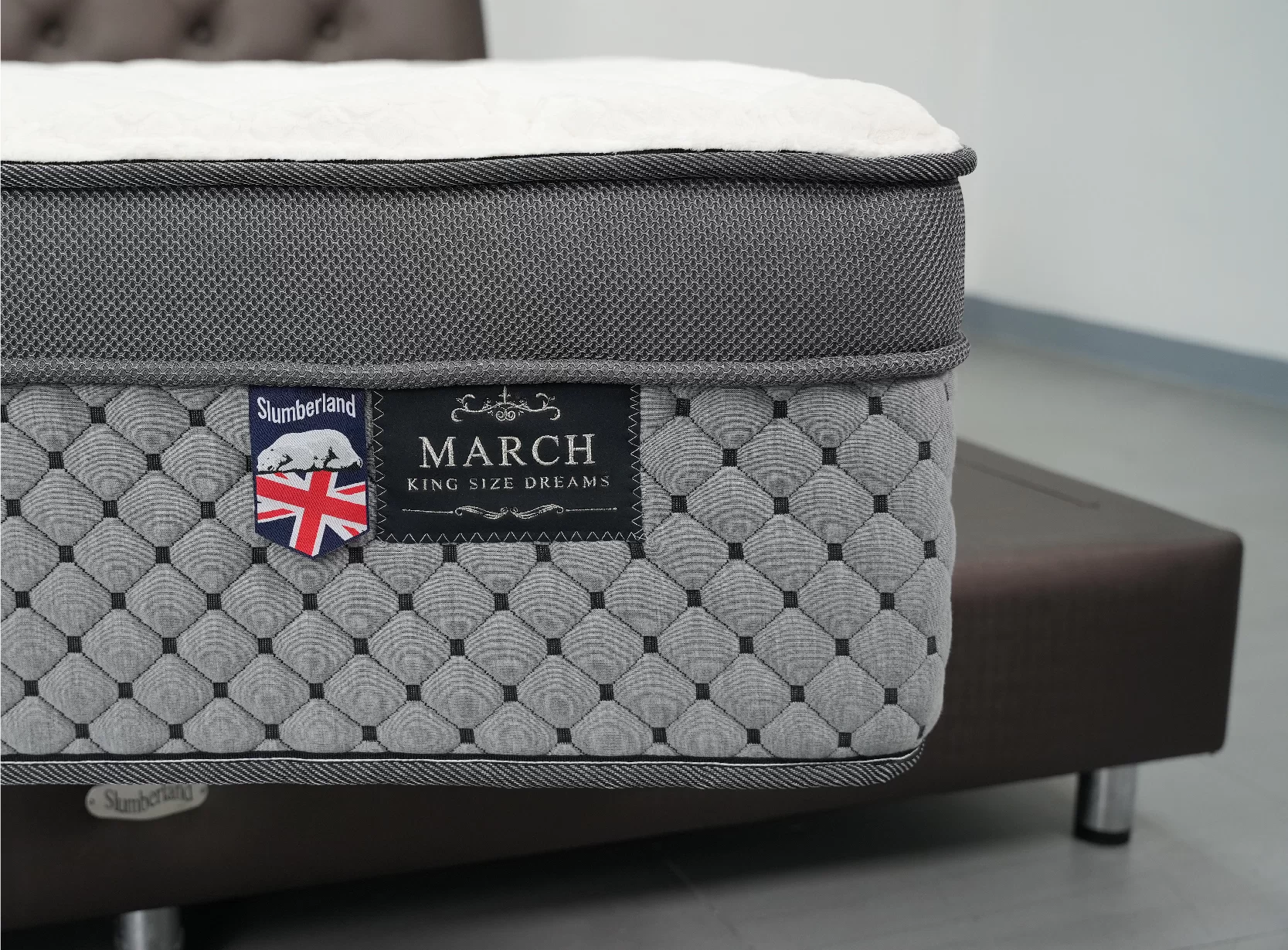 Slumberland Imperial March phản ánh sự sang trọng và giá trị của giấc ngủ dành cho bạn. Tăng thêm sự mềm mại và thoải mái với chất liệu vải nhung cao cấp nhập khẩu từ Bỉ, cùng thiết kế đường may mang lại giá trị cao nhất cho phòng ngủ của bạn. Công nghệ tiên tiến Kikoo Đức giúp bạn luôn mát mẻ thoải mái trong hơn 12 giờ. Công nghệ Kikoo, một giải pháp làm mát bền vững từ tự nhiên, giúp nhiệt dư thừa thoát ra và hấp thụ nhiệt cơ thể trong khi bạn ngủ. Tạo nên sự kết hợp độc đáo, cung cấp mức hỗ trợ phù hợp cần thiết cho từng vùng cơ thể bằng lớp cao su thiên nhiên chất lượng cao, bạn sẽ cảm thấy tăng sự thoải mái và thư giãn.